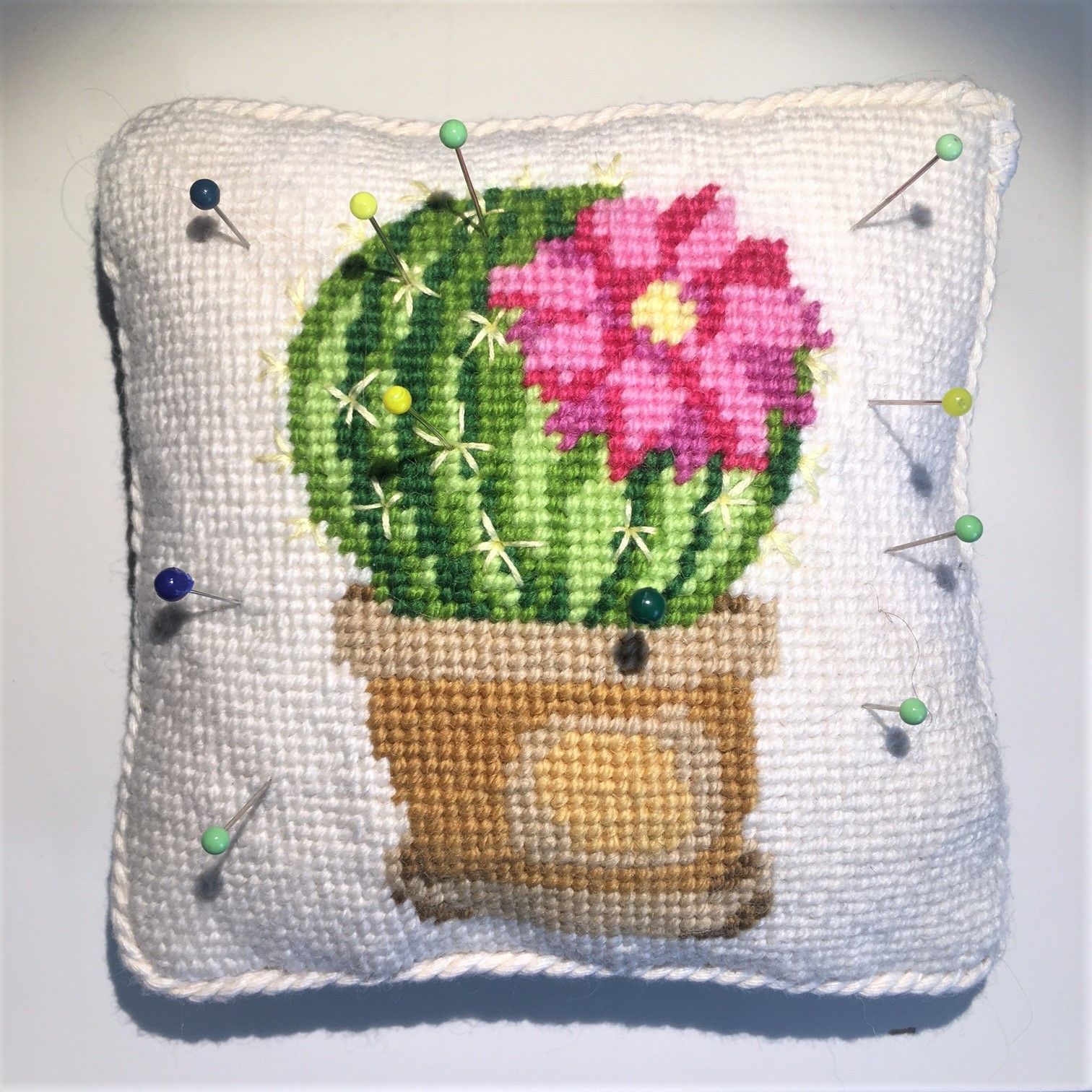 Dit sjieke tapisserie speldenkussen geborduurd met wol op stramien en met een fluwelen achterkant, maak je met liefde voor het ambacht!